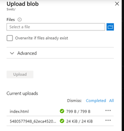 - Regrese nuevamente a la pantalla del contenedor “$web” y proceda a subir el archivo provisto llamado “about.html”.
